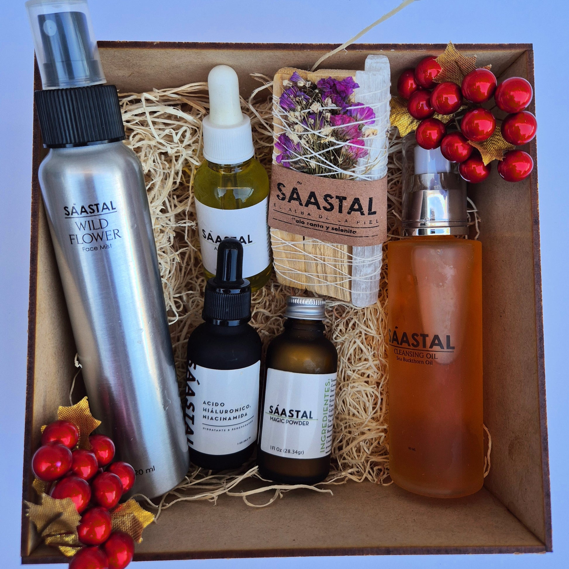 Holiday Radiance Set reúne cinco esenciales botánicos diseñados para limpiar profundamente, renovar, hidratar y nutrir tu rostro, mientras incorpora elementos energéticos que acompañan tu autocuidado desde un plano más sutil.